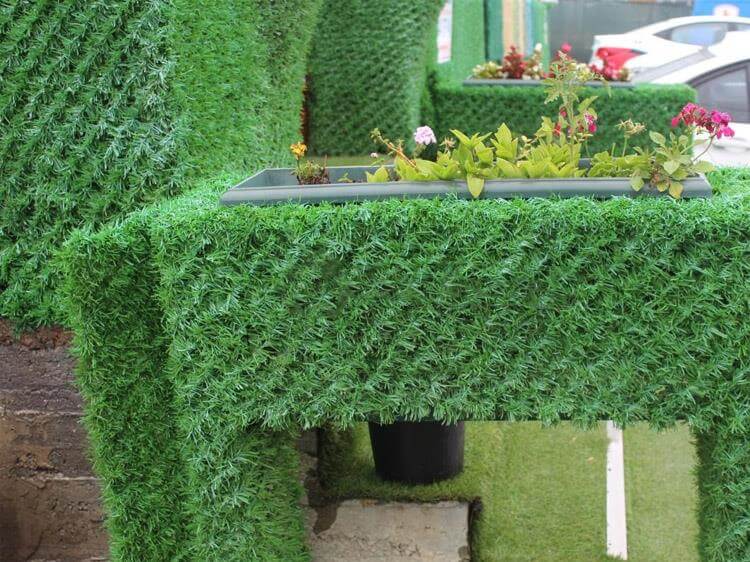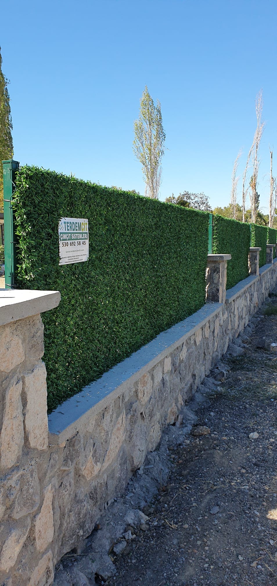 2019 dan bu yana İzmir’ de üretimini yaptığımız çim çit; 2 adet 1,6mm galvanizli telin pvc sarılmasıyla ortaya çıkan bir üründür. Genellikle dekorasyon alanında kullanılan ürün, güvenlik amaçlı da kullanılmaktadır. İzmir bölgesinde bahçe etrafı, çöp konteynırı, geri dönüşüm kutularının kaplanması, teras üstü, havuz kenarları, duvar çevresinde kullanılmaktadır. Jiletli tel, dikenli tel, panel kapı, sürgülü kapı, panel uygulaması, kafes tel ve beton direk alanlarında çalışmamız mevcuttur. ...